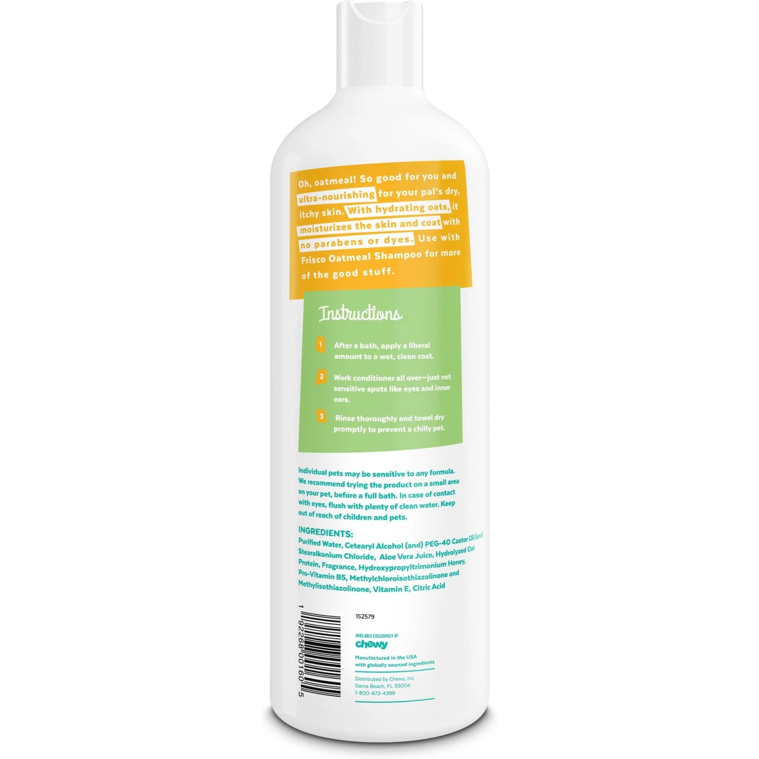 - From Frisco by Chewy. Nourishing oatmeal conditioner soothes and hydrates dry, itchy skin. Ideal for dogs and cats.