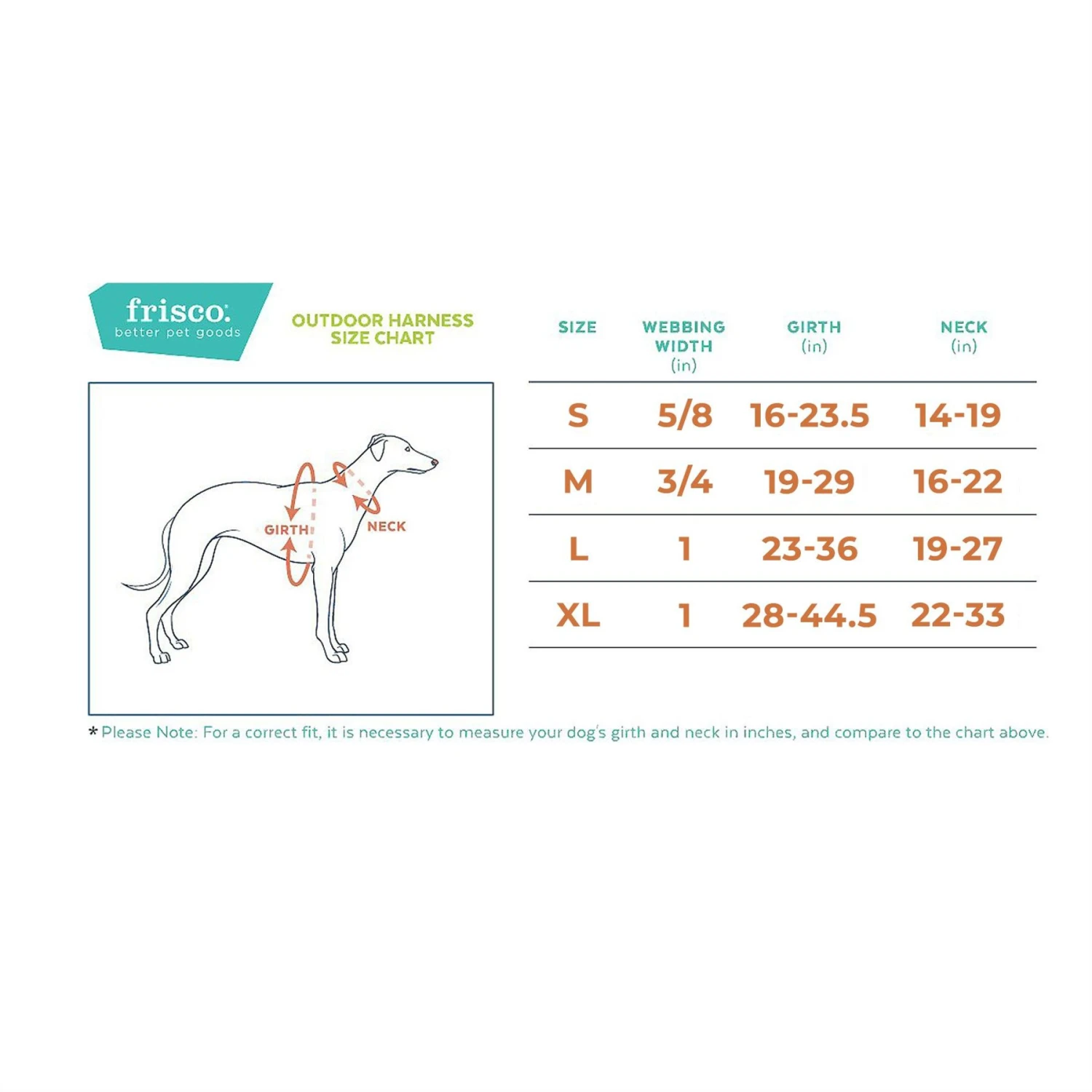 | Size | M – Girth: 19 – 29-in, S – Girth: 16 – 23-in, L – Girth: 23 – 36-in, XL – Girth: 32 – 44-in |