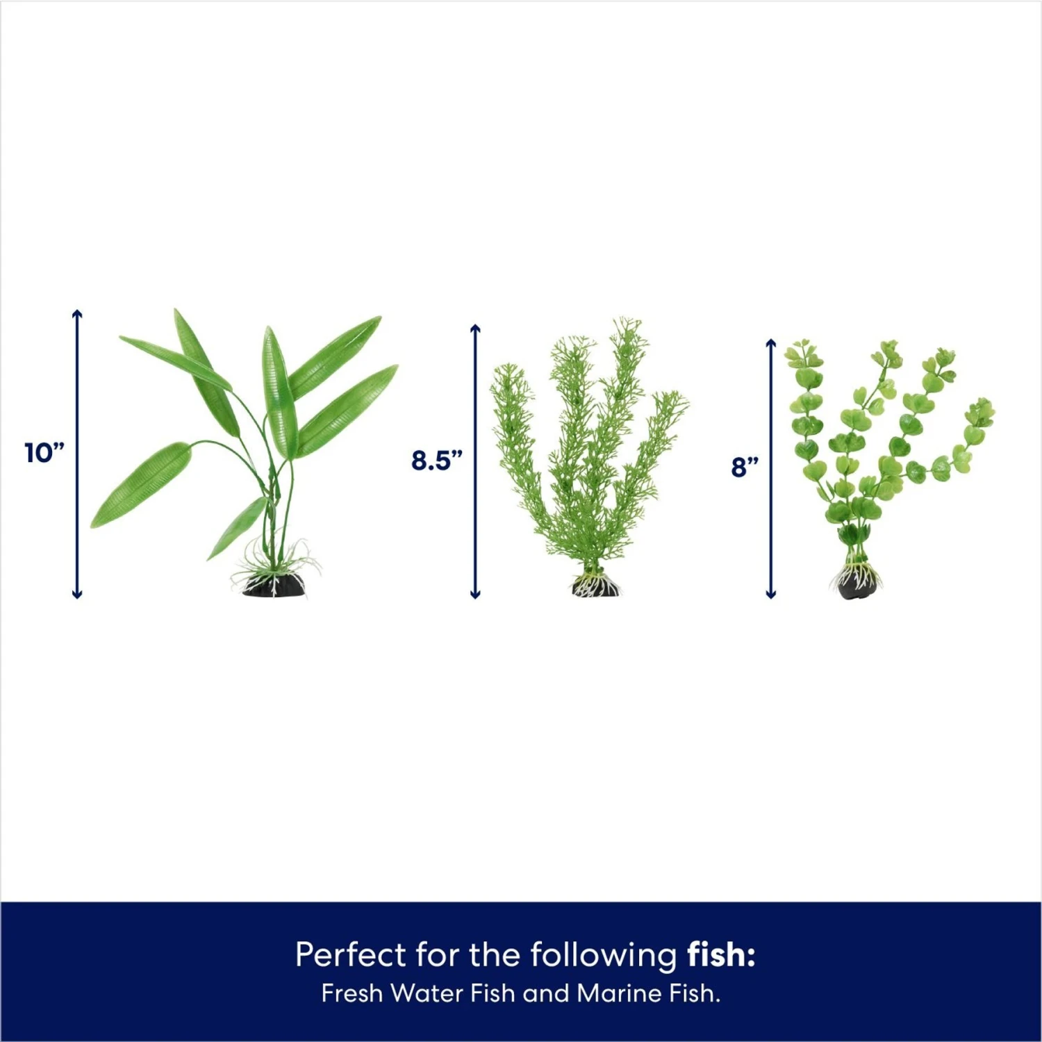 - From Frisco by Chewy. This three-piece, plastic aquarium plant set is just the kind of low-maintenance, big-style décor that will take your fish’s home to the next level.