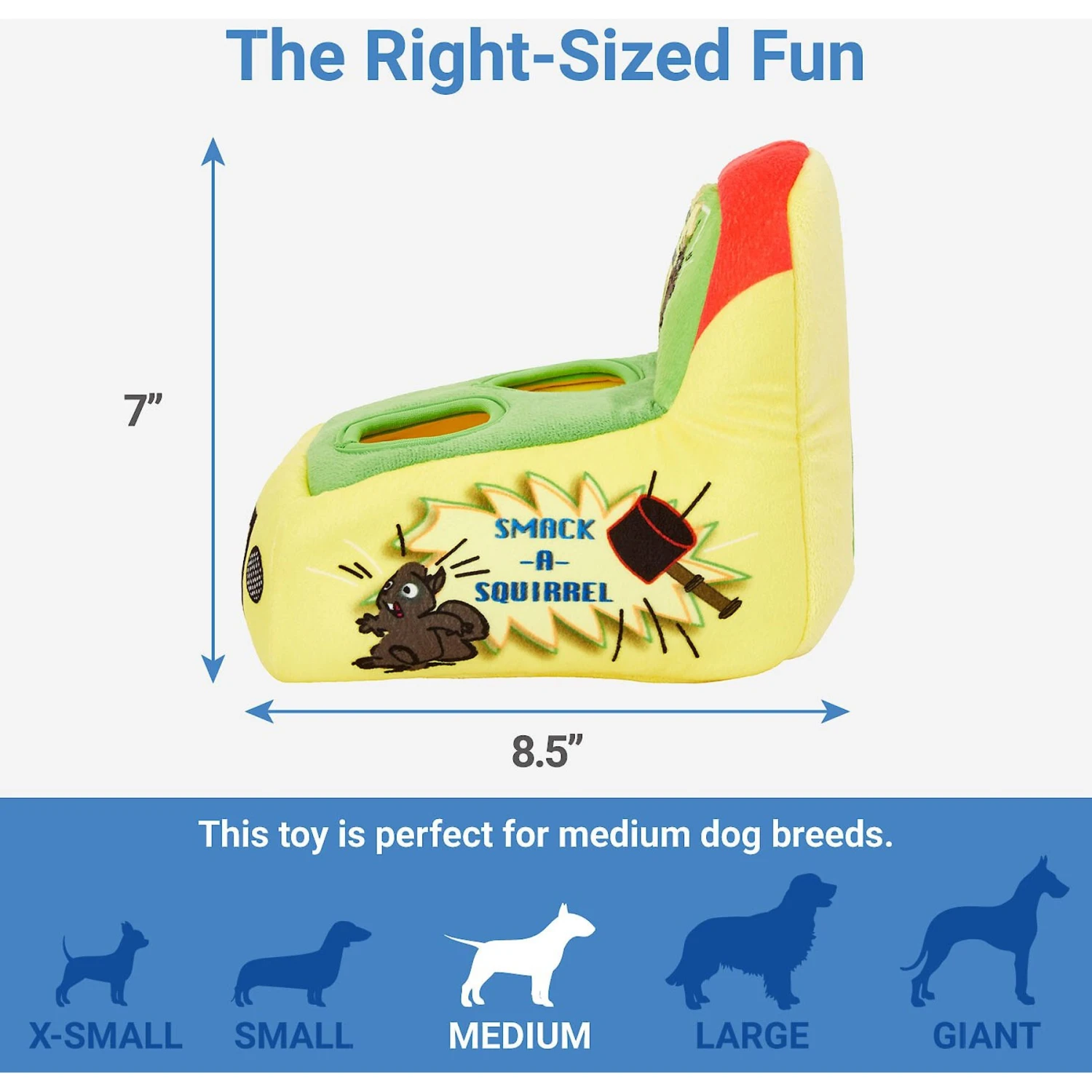 - Includes a smash-a-squirrel game with three squirrels and a mallet toy.