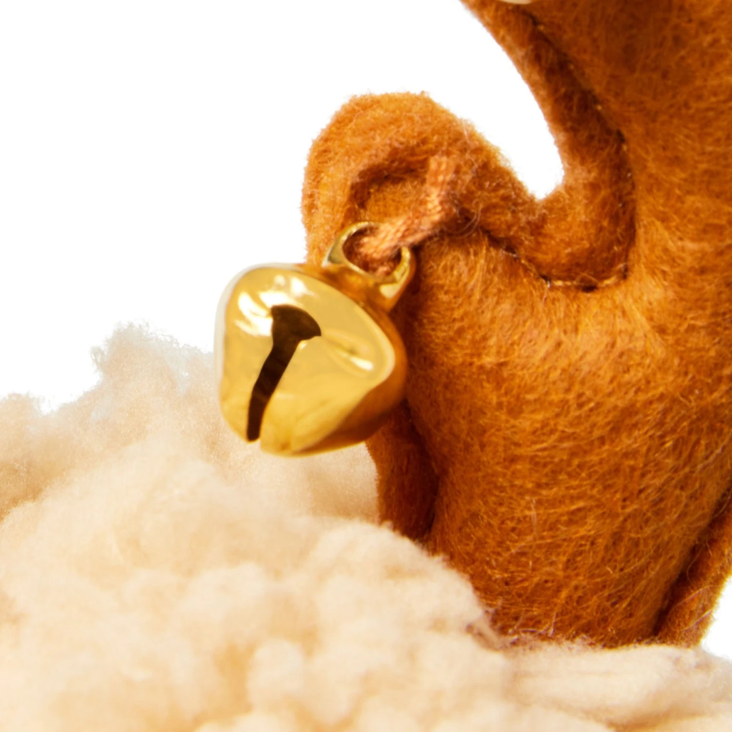 - Felt antlers with gold bells at the tips make for a multisensory appeal.