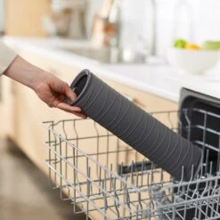 - Large, BPA-free silicone mat is designed with a wavy line pattern that helps to prevent bowls from skidding around and off the mat.