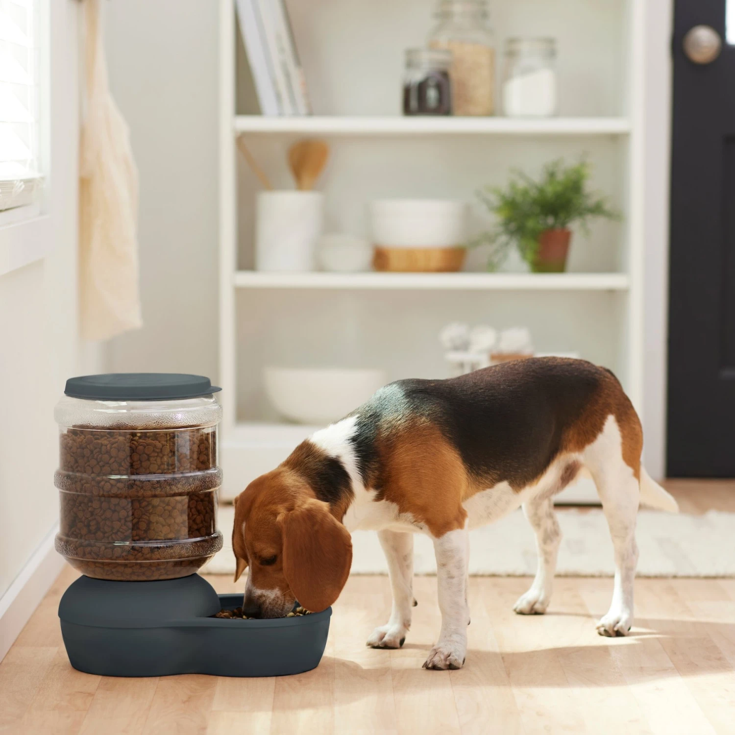- This feeder uses gravity to automatically refill your pet’s food bowl when it gets low. It’s a stress-free way to provide a constant supply of food for dogs and cats alike.