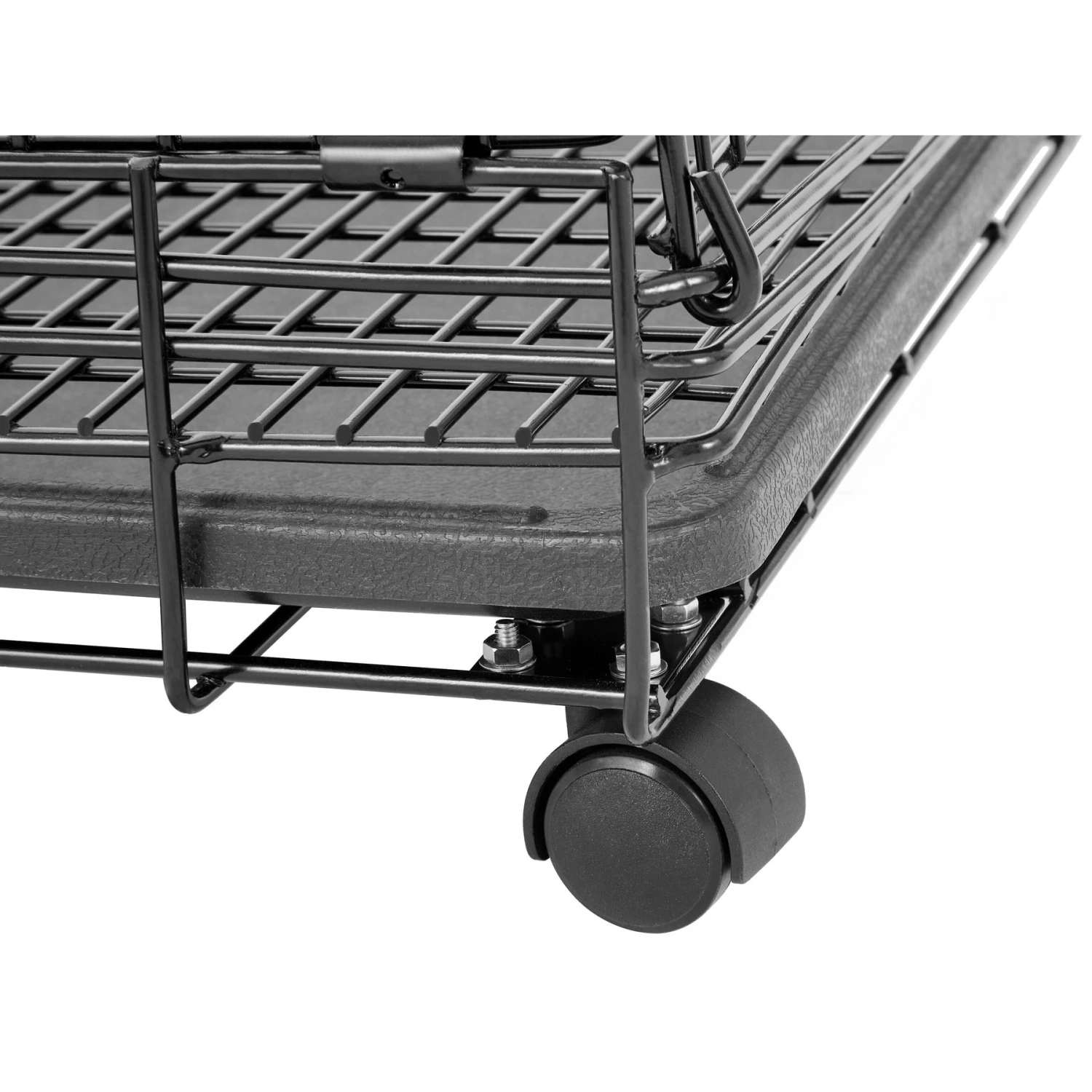 - Constructed with sturdy, e-coated metal wire for durability and includes a plastic pan to help contain messes.